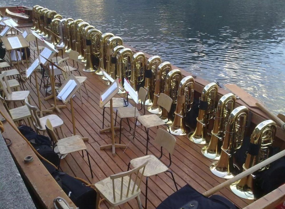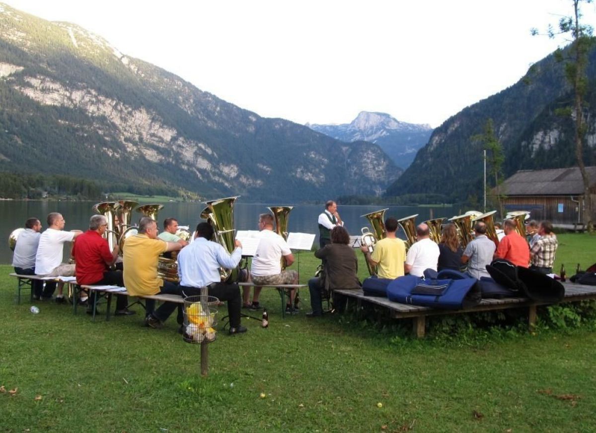 Wenn dann noch Zeit bleibt, schmökert man im Festsaal bei den ausgestellten Noten. Man probiert neue Instrumente von namhaften Erzeugern und lässt sich über Reparatur und Wartung beraten. Weiters dürfen die registereigenen Veranstaltungen nicht versäumt werden, wie die schon legendäre „Mutzn“-Fahrt der Tubisten auf dem Hallstättersee.